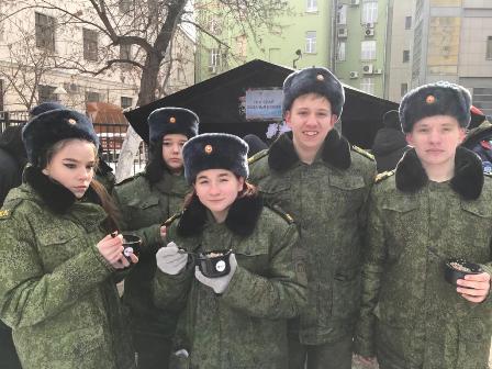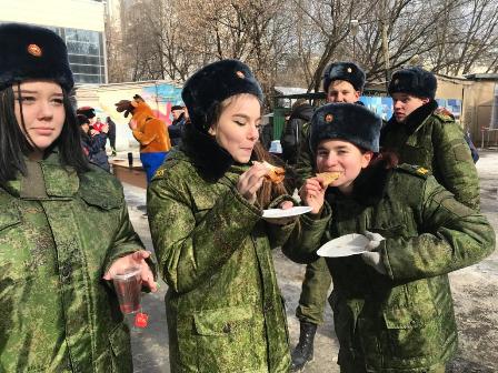 Можно с полной уверенностью сказать: «Праздник удался!». Кадеты с большим удовольствием слушали народные мелодии и песни, посвящённые празднику, участвовали в веселых конкурсах, состязались на ловкость и быстроту по разборке автомата Калашникова (АК-74), соревновались в стрельбе из лука. Окончился праздник угощением - чаепитием с блинами, пирогами и полевой кашей. Кадеты получили огромный заряд бодрости и хорошего настроения!