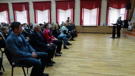 Председатель Общероссийской общественной организации ветеранов войск правопорядка генерал-лейтенант Ровенский Петр Николаевич сказал: «Герой… Слово-то, какое красивое! Герои были всегда. На них равнялись. Им старались подражать. С древних времен на Руси почитались люди, которые стояли за правое дело, жертвуя собой, защищали землю – матушку, трудились во славу Родины». Пожелал кадетам быть дружными, усердно учиться и тренироваться, чтобы стать достойными гражданами и настоящими защитниками своей Родины.