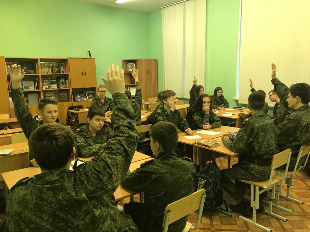 26 ноября в школьной библиотеке состоялся квизбук «Библиомарафон», посвященный истории Отечества. В интеллектуальном соревновании приняли участие команды всех кадетских классов. Вопросы викторины были подготовлены учителями истории: Ефимкиным Д.Г., Дидковской Н.А., Кутовским А.А., педагогом-библиотекарем Башкировой М.В. и воспитателями кадетских классов Щученко Е.В., Сополевым А.И., Суховеем А.В., Медведевым Д.С.