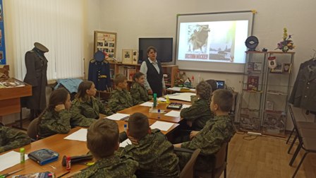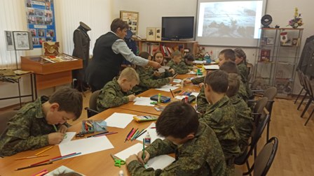 В преддверии 80-летнего юбилея начала контрнаступления Советских войск под Москвой преподаватель изобразительного искусства Юлия Котова провела с воспитанниками кадетских классов мастер-класс по теме: «Создай экспонат своими руками». Юные воспитанники своими руками под руководством Юлии Владимировны создали картину, которая будет храниться в музее школы.