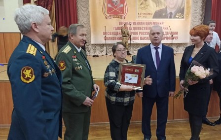 Началось мероприятие с открытия Галереи Героев Отечества и памятника начальнику разведки округа, Герою Российской Федерации, полковнику Василию Эдуардовичу Чубенко, который 26 июля 2005 года погиб в ходе проведения специальной операции на северном Кавказе. Имя его почетно носит 10 кадетский класс нашей школы.