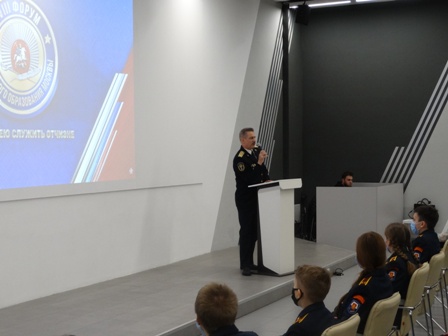 Мероприятие началось с торжественной части в павильоне «Умный город», где наши кадеты в дружественной обстановке смогли пообщаться с Героем Российской Федерации, ветераном Управления «В» Центра специального назначения ФСБ России, полковником Сергеем Шавриным. Далее ребята посетили выставочный павильон «Россия — моя история», где опытный экскурсовод познакомил кадет с выставочными помещениями павильона. После образовательной программы в павильонах все участники собрались на катке. Вместе с кадетами на лед вышли столичные спортсмены и директора московских школ. Для ребят прошел мастер-класс по фигурному катанию, который провел Александр Волобуев, мастер спорта по фигурному катанию, призер финала кубка России, победитель чемпионата вооруженных сил страны. В финале форума на стенах павильона «Центральный» было показано световое шоу.