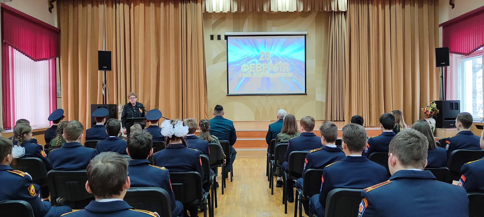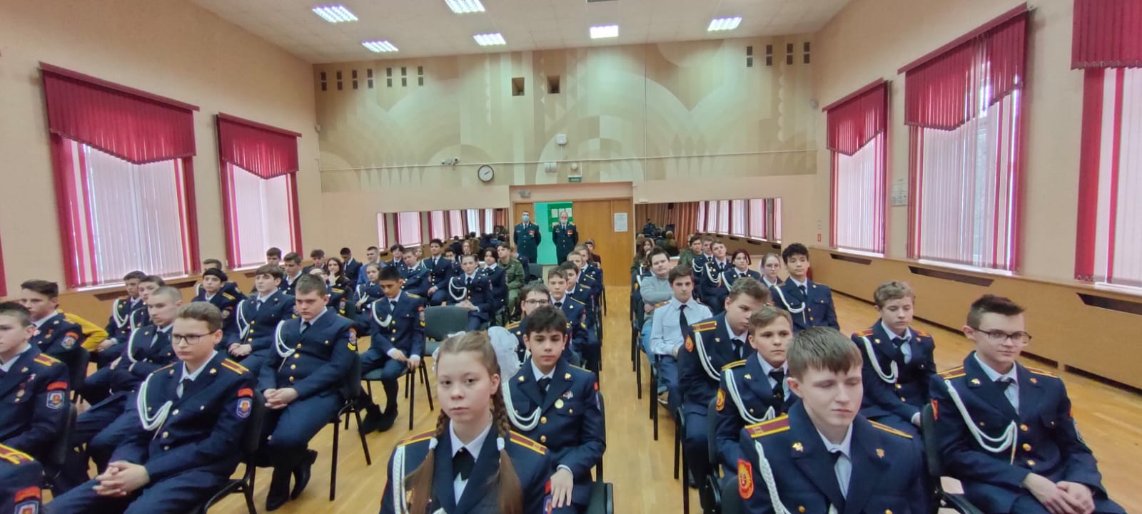 Открылся Урок Мужества с вноса Флага Российской Федерации, Флага города Москвы и флага Кадетского образования нашей школы. С замиранием сердца воспитанники и кадеты исполнили гимн России. С приветственным словом выступила администратор корпуса Ирина Ивановна Леонова. В своём выступлении она подчеркнула важность защиты Отечества, готовность всех поколений защищать Родину, обратилась к кадетам и воспитанникам с призывом активнее овладевать знаниями, навыками и умениями, так необходимыми при защите Отечества. Старший воспитатель кадетских классов Анатолий Иванович Сополев в своём выступлении обратил особое внимание на преемственность поколений славных защитников Отечества, на их преданность Родине и Боевому Знамени. Далее был зачитан приказ директора школы о поощрении кадет и воспитанников, достигших успехов в обучении, являющихся примерами в поведении, принимающих активное участие в общественной жизни школы. Кроме этого, ряду кадет были присвоены кадетские звания младшего командного состава. В завершении Урока Мужества кадеты 9 класса показали небольшой концерт для всех присутствующих на мероприятии: спели патриотические песни, прочитали стихи о войне.