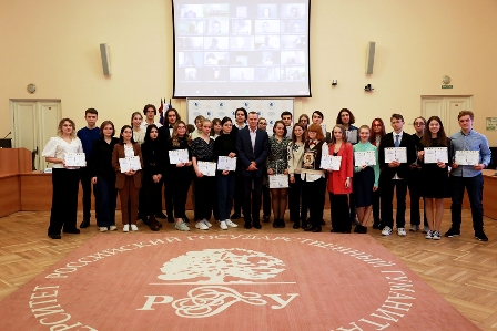 Ученик 11 «И» класса Глеб стал победителем олимпиады по русскому языку и принял непосредственное участие в торжественной церемонии награждения, а также получил диплом из рук ректора РГГУ Безбородова Александра Борисовича.