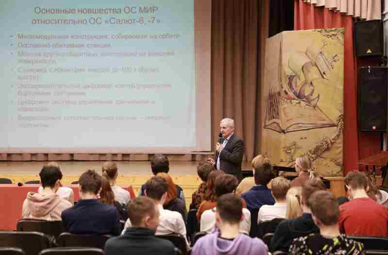 Тема встречи была крайне обширной. Александр Юрьевич Калери представил основные вехи развития пилотируемой космонавтики и очень подробно представил тему орбитальных станций, таких как «Салют», «Скайлэб», уделив особое внимание легендарному орбитальному комплексу «Мир».