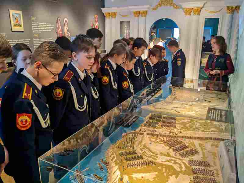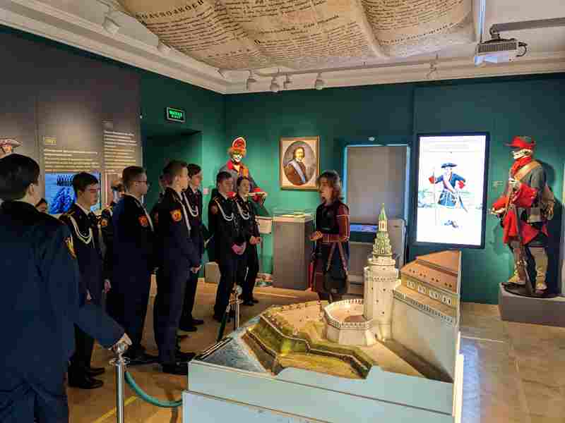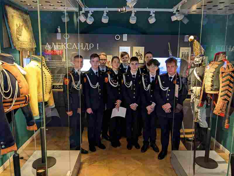 При помощи оригинальных музейно-выставочных решений и мастерства экскурсоводов, кадеты познакомились с этапами преобразования военного мундира от эффектных форм XVIII столетия и упрощённого «народного стиля» образцов конца XIX века до практичного обмундирования периодов Первой мировой и Великой Отечественной войны.