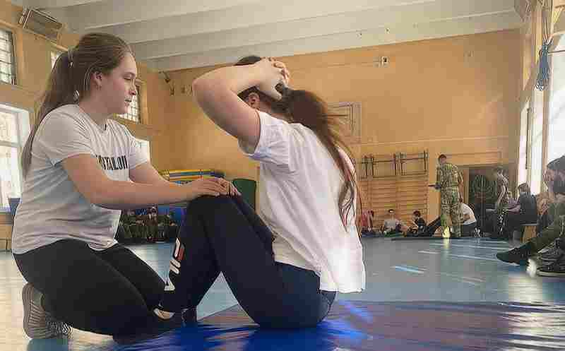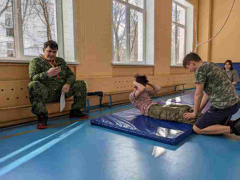 1 этап в соответствии с Положением о турнире проводится на базе образовательного учреждения. От кадетских классов нашей школы были сформированы две команды по 5 девушек и 5 юношей в каждой. Испытания для участников турнира были проведены в рамках требований нормативов ВФСК ГТО: юноши выполнили норматив подтягивания из виса на высокой перекладине (максимальное количество раз), девушки – сгибание и разгибание рук в упоре лёжа на полу (максимальное количество раз), для всех участников – поднимание туловища из положения лёжа на спине (количество раз за 1 минуту) и наклон вперёд из положения стоя на гимнастической скамье.